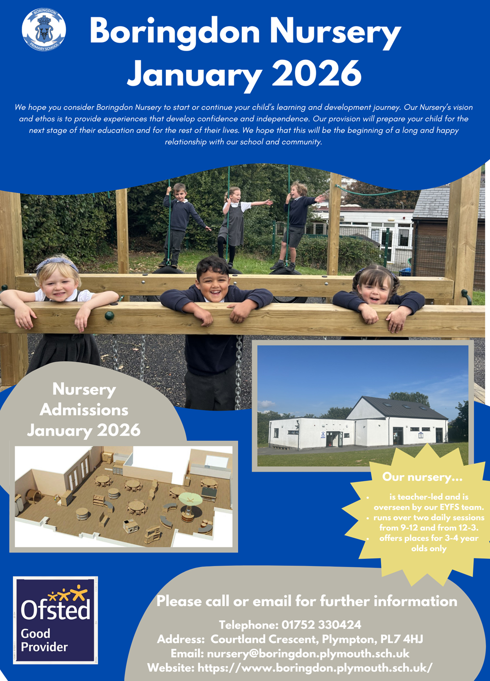 For further information please email: nursery@boringdon.plymouth.sch.uk